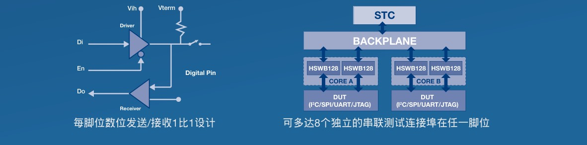 数字测试 | 非多路复用1:1每引脚架构,具有单独的每引脚电平设置 |