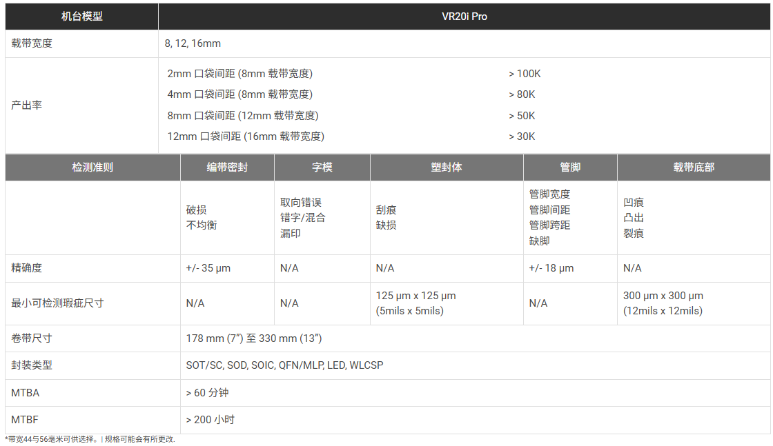 VR20i Pro 编带后视检机台以自动化AI为核心技术设计用于卷带至卷带外观检测