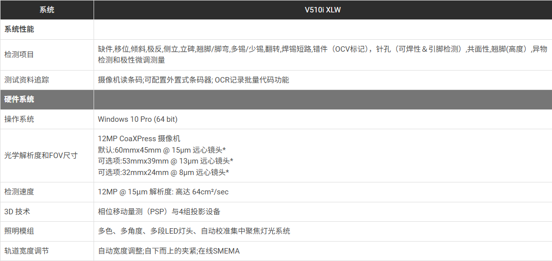 V510i XLW AOI 为PCBA SMT和半导体行业提供新一代先进3D光学检测的方案, 给予更大面积的组装板更为广泛与精准的视觉检测。