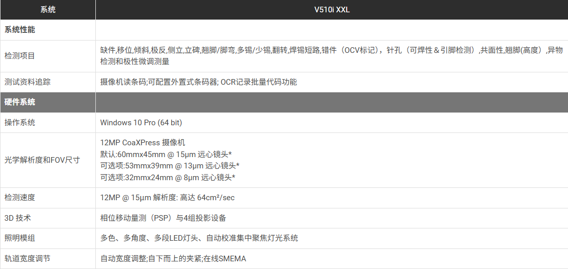 V510i XXL AOI 为PCBA SMT和半导体行业提供新一代先进3D光学检测的方案, 给予更大面积的组装板更为广泛与精准的视觉检测。