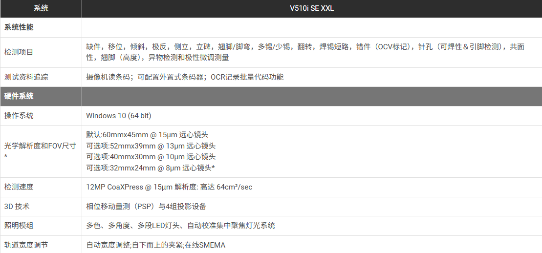 V510i SE XXL AOI 为PCBA SMT和半导体行业提供新一代先进3D光学检测的方案, 给予更大面积的组装板更为广泛与精准的视觉检测。