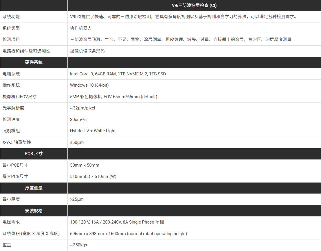 专为安全和质量保证的保角涂层检测而设计, 包括人机协同工作。