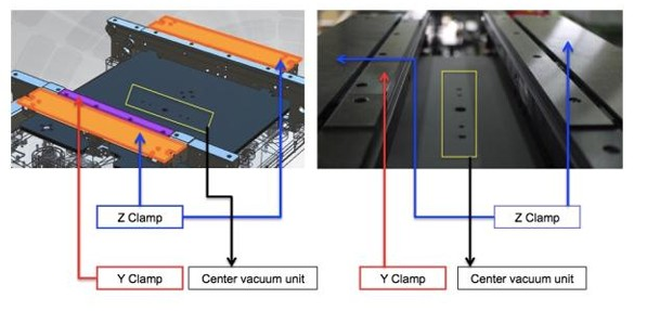 为了获得较佳印刷质量,Y、Z 夹具系统在印刷过程中牢固地固定电路板。中央真空单元和支撑板(可选)确保薄型 PCB 的平整度并防止电路板出现任何翘曲。此外,如有必要,可以选用侧面真空夹具工具作为可选配件。